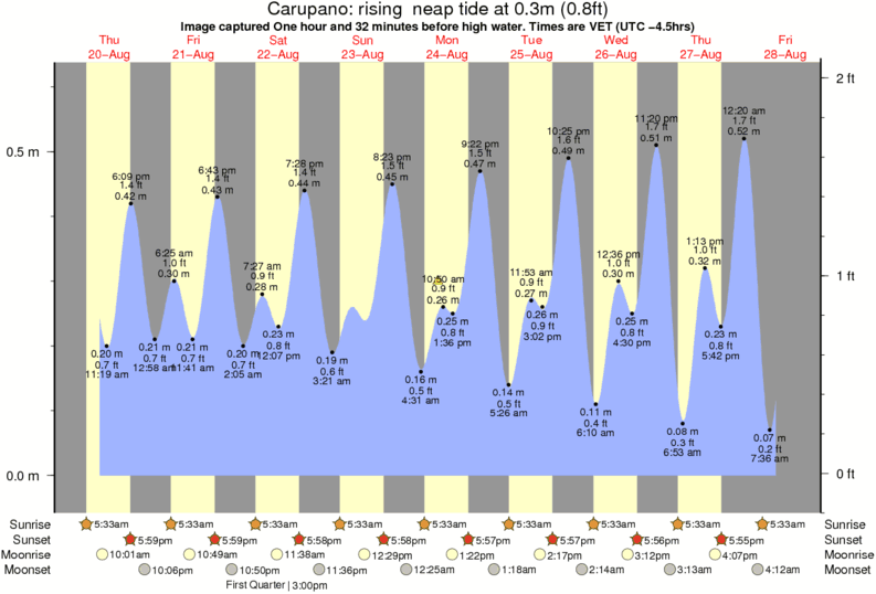 Image captured One hour and 32 minutes before high water (rising neap tide). Tide height was 0.3m (0.8 ft). Range 0.58m (1.9 ft). Toggle tide graph