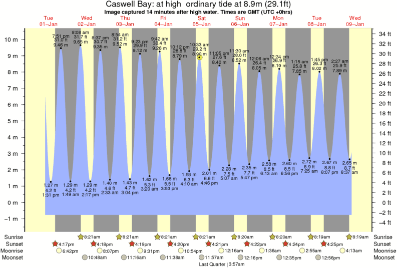 Image captured 14 minutes after high water (at high ordinary tide). Tide height was 8.9m (29.1 ft). Range 10.41m (34.2 ft). Toggle tide graph
