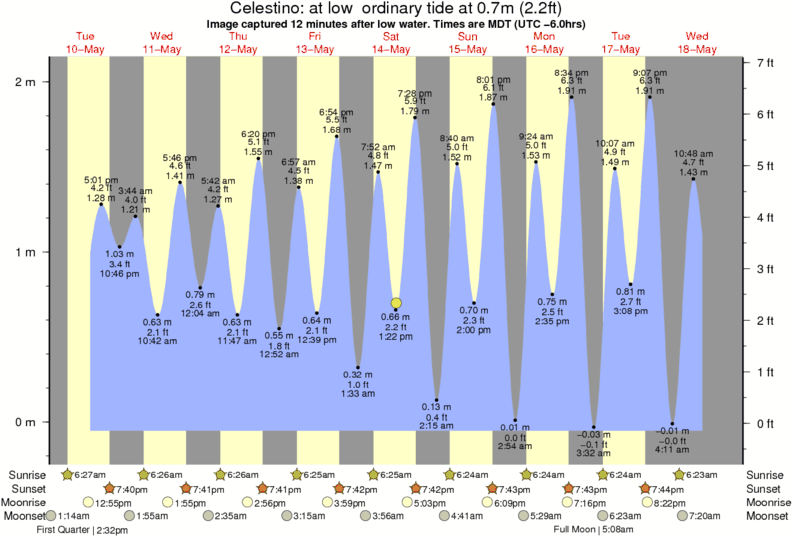 Image captured 12 minutes after low water (at low ordinary tide). Tide height was 0.7m (2.2 ft). Range 2.00m (6.6 ft). Toggle tide graph