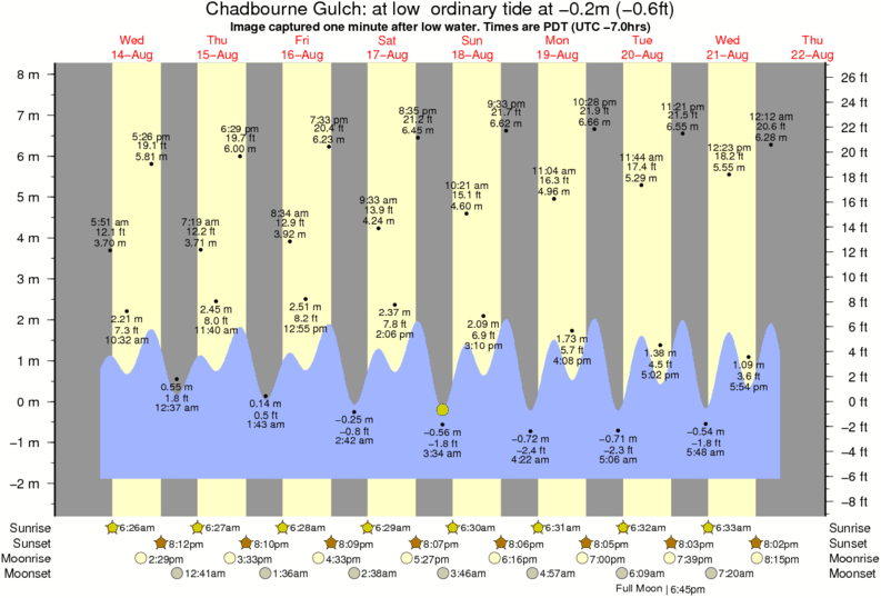 Image captured one minute after low water (at low ordinary tide). Tide height was -0.2m (-0.6 ft). Range 9.24m (30.3 ft). Toggle tide graph