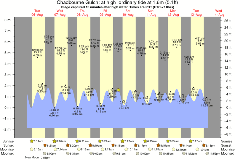 Image captured 13 minutes after high water (at high ordinary tide). Tide height was 1.6m (5.1 ft). Range 9.24m (30.3 ft). Toggle tide graph
