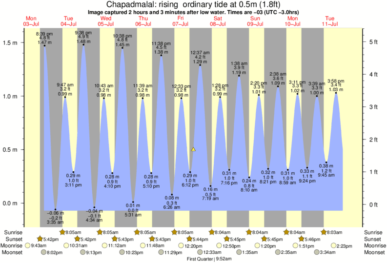 Image captured 2 hours and 3 minutes after low water (rising ordinary tide). Tide height was 0.5m (1.8 ft). Range 1.55m (5.1 ft). Toggle tide graph