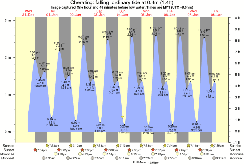 Forecast wind and swell just offshore from Cherating around the time the photo was taken