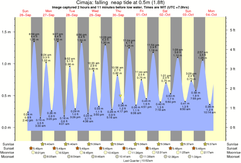 Image captured 2 hours and 11 minutes before low water (falling neap tide). Tide height was 0.5m (1.8 ft). Range 1.62m (5.3 ft). Toggle tide graph
