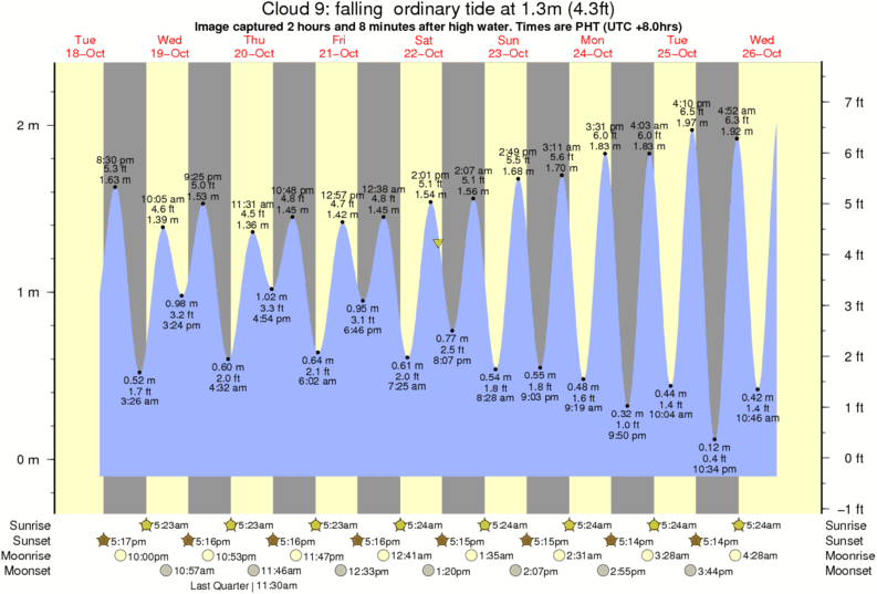 Forecast wind and swell just offshore from Cloud 9 around the time the photo was taken