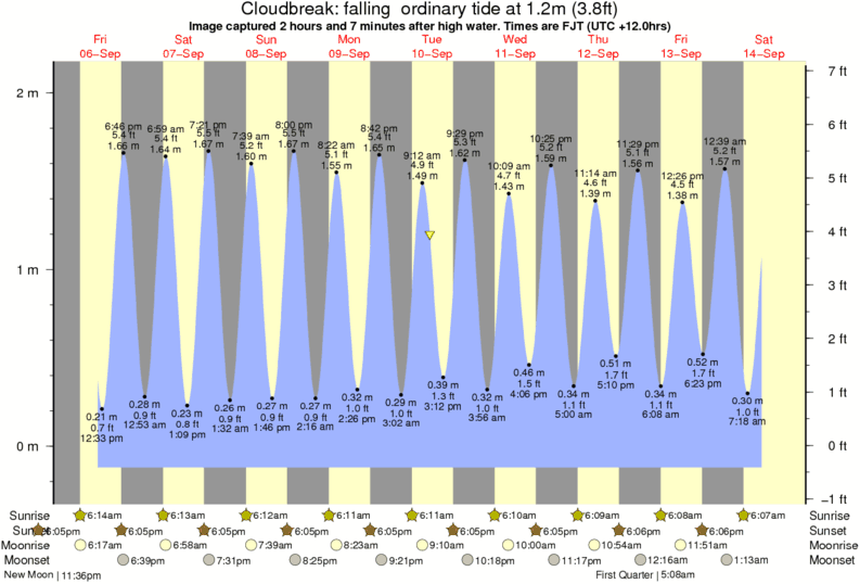 Forecast wind and swell just offshore from Cloudbreak around the time the photo was taken