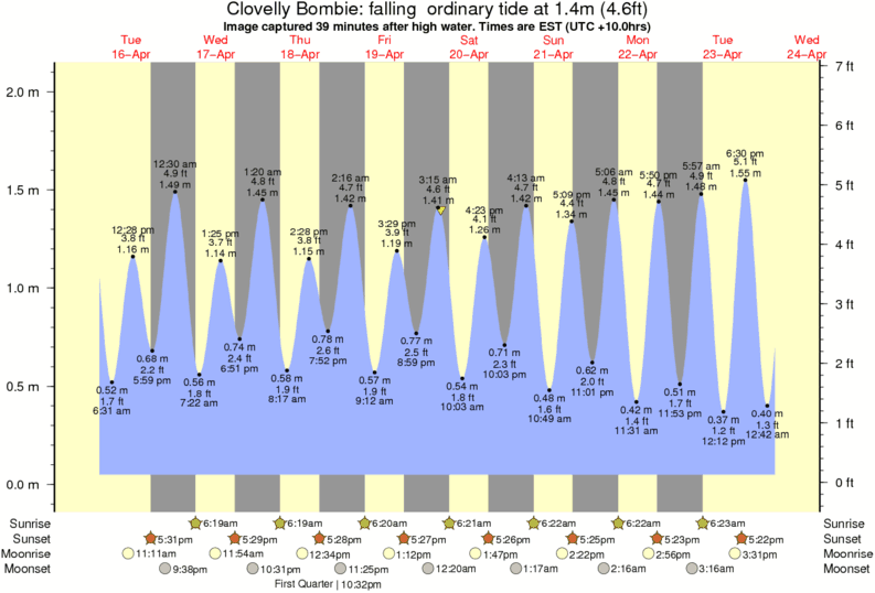 Image captured 39 minutes after high water (falling ordinary tide). Tide height was 1.4m (4.6 ft). Range 1.91m (6.3 ft). Toggle tide graph
