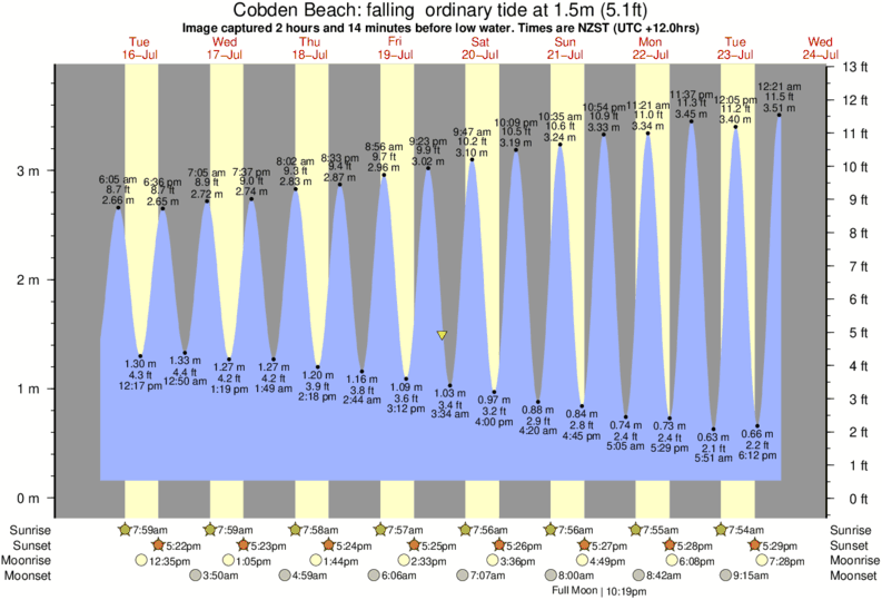 Image captured 2 hours and 14 minutes before low water (falling ordinary tide). Tide height was 1.5m (5.1 ft). Range 3.47m (11.4 ft). Toggle tide graph