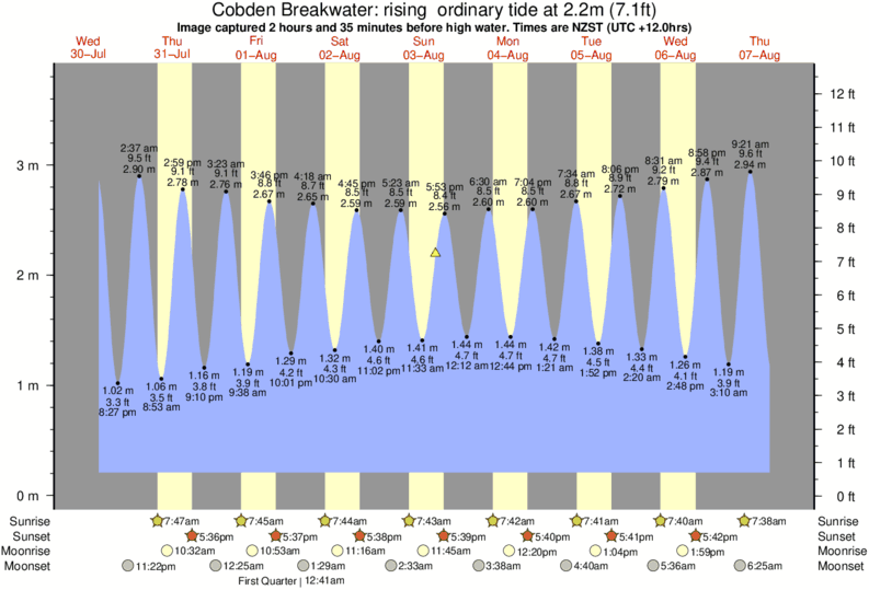 Image captured 2 hours and 35 minutes before high water (rising ordinary tide). Tide height was 2.2m (7.1 ft). Range 3.38m (11.1 ft). Toggle tide graph