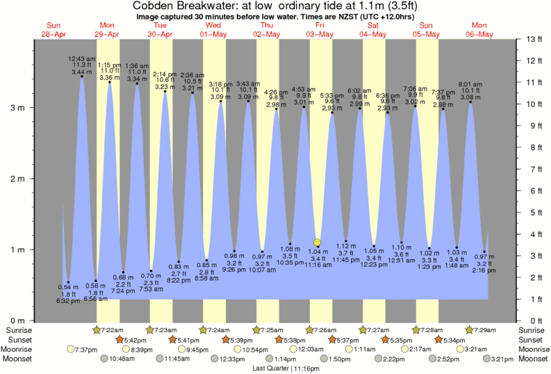 Forecast wind and swell just offshore from Cobden Breakwater around the time the photo was taken