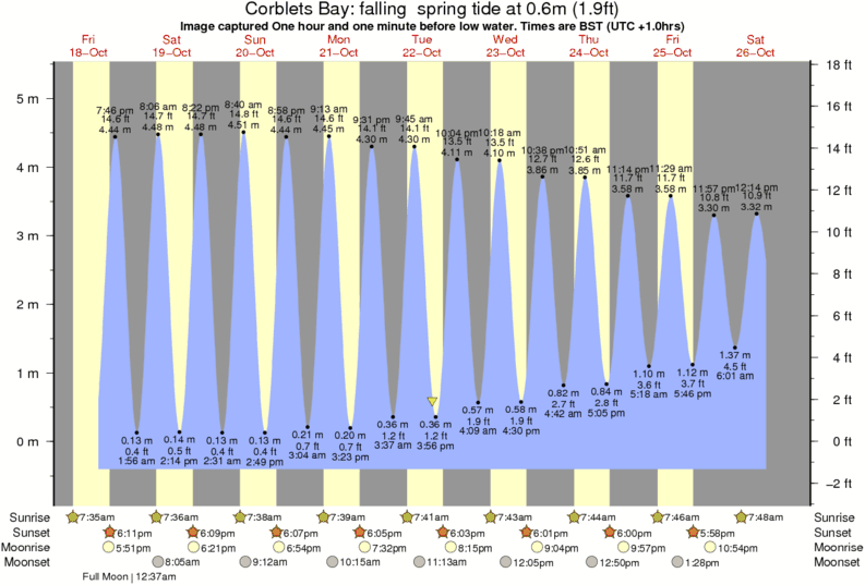 Image captured One hour and one minute before low water (falling spring tide). Tide height was 0.6m (1.9 ft). Range 5.40m (17.7 ft). Toggle tide graph