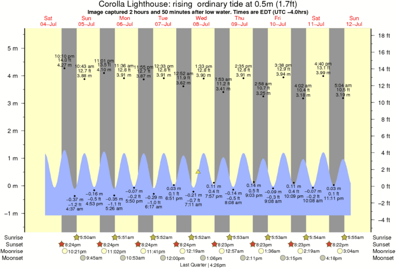Forecast wind and swell just offshore from Corolla Lighthouse around the time the photo was taken