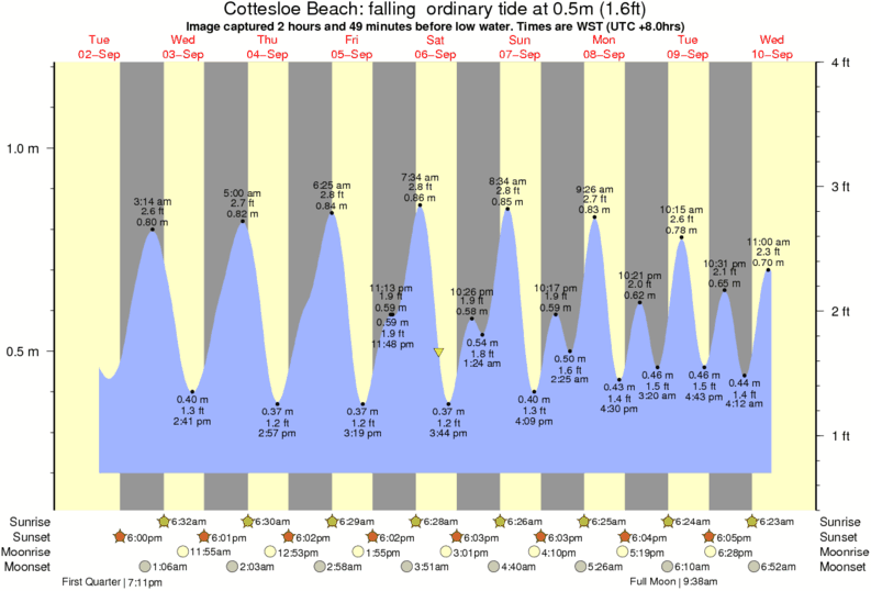 Image captured 2 hours and 49 minutes before low water (falling ordinary tide). Tide height was 0.5m (1.6 ft). Range 0.92m (3.0 ft). Toggle tide graph
