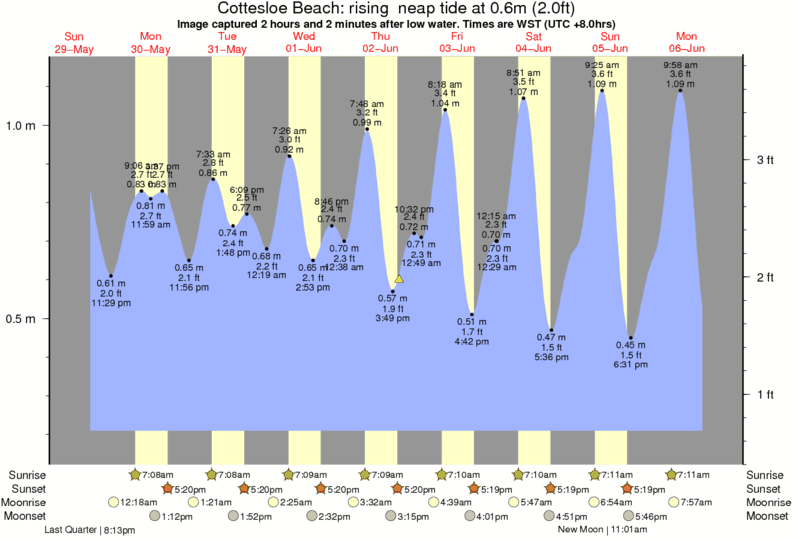 Image captured 2 hours and 2 minutes after low water (rising neap tide). Tide height was 0.6m (2.0 ft). Range 0.88m (2.9 ft). Toggle tide graph