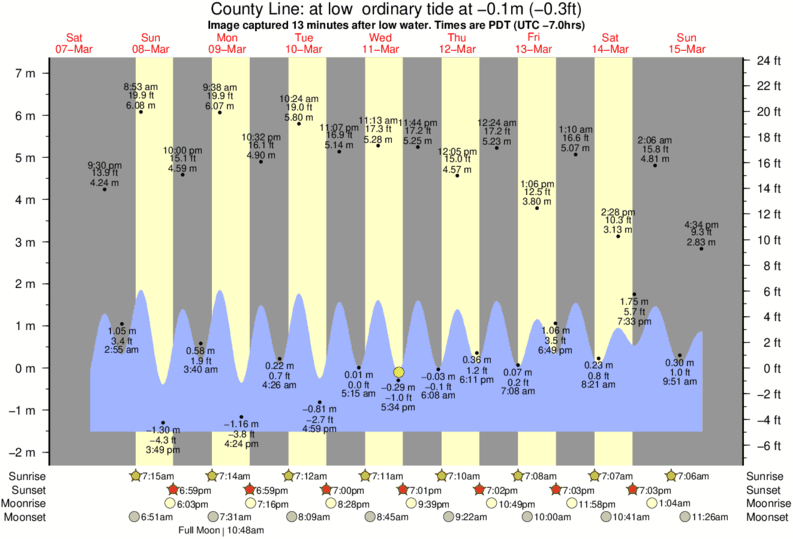 Image captured 13 minutes after low water (at low ordinary tide). Tide height was -0.1m (-0.3 ft). Range 8.08m (26.5 ft). Toggle tide graph