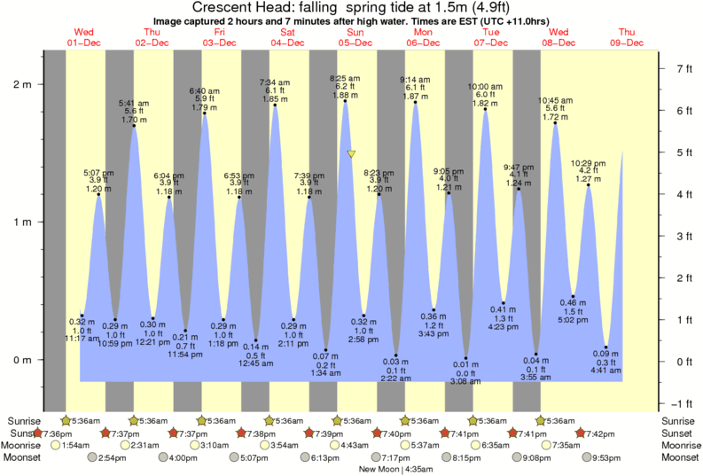 Image captured 2 hours and 7 minutes after high water (falling spring tide). Tide height was 1.5m (4.9 ft). Range 2.19m (7.2 ft). Toggle tide graph