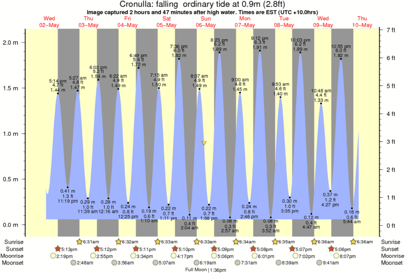 Image captured 2 hours and 47 minutes after high water (falling ordinary tide). Tide height was 0.9m (2.8 ft). Range 1.90m (6.2 ft). Toggle tide graph