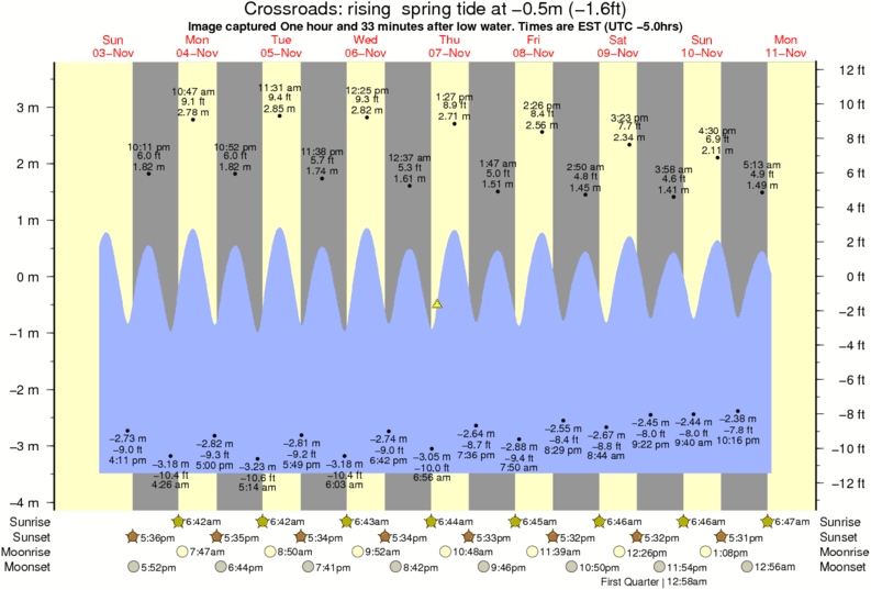 Image captured One hour and 33 minutes after low water (rising spring tide). Tide height was -0.5m (-1.6 ft). Range 6.62m (21.7 ft). Toggle tide graph