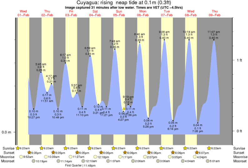 Image captured 31 minutes after low water (rising neap tide). Tide height was 0.1m (0.3 ft). Range 0.46m (1.5 ft). Toggle tide graph