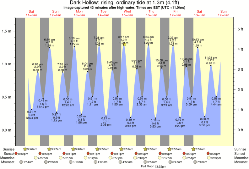 Image captured 43 minutes after high water (rising ordinary tide). Tide height was 1.3m (4.1 ft). Range 1.62m (5.3 ft). Toggle tide graph