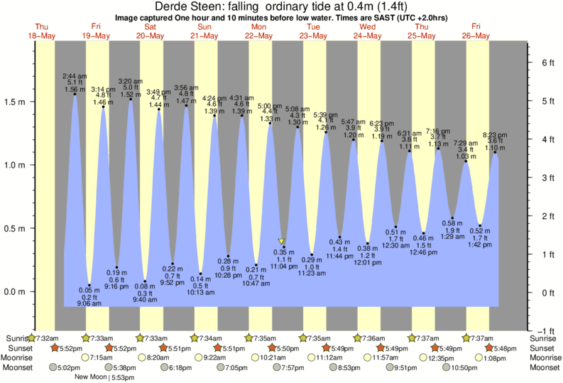 Image captured One hour and 10 minutes before low water (falling ordinary tide). Tide height was 0.4m (1.4 ft). Range 1.91m (6.3 ft). Toggle tide graph