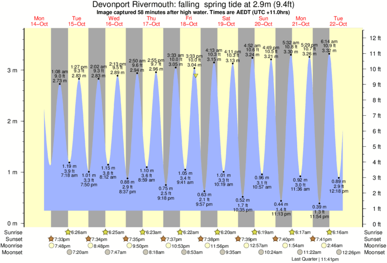 Image captured 58 minutes after high water (falling spring tide). Tide height was 2.9m (9.4 ft). Range 3.25m (10.7 ft). Toggle tide graph