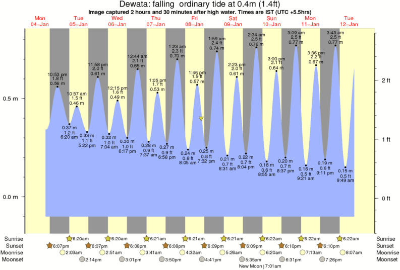 Image captured 2 hours and 30 minutes after high water (falling ordinary tide). Tide height was 0.4m (1.4 ft). Range 0.87m (2.9 ft). Toggle tide graph