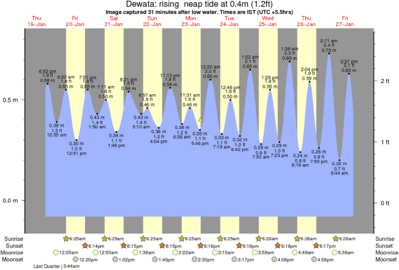 Image captured 31 minutes after low water (rising neap tide). Tide height was 0.4m (1.2 ft). Range 0.85m (2.8 ft). Toggle tide graph
