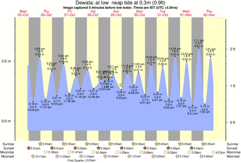 Image captured 5 minutes before low water (at low neap tide). Tide height was 0.3m (0.9 ft). Range 0.86m (2.8 ft). Toggle tide graph