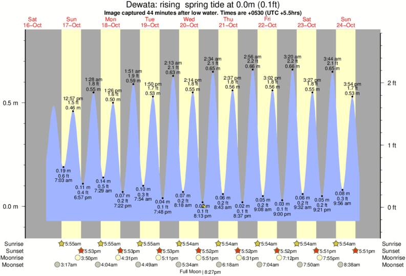 Image captured 44 minutes after low water (rising spring tide). Tide height was 0.0m (0.1 ft). Range 0.84m (2.8 ft). Toggle tide graph