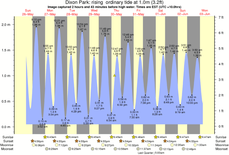 Image captured 2 hours and 43 minutes before high water (rising ordinary tide). Tide height was 1.0m (3.2 ft). Range 1.92m (6.3 ft). Toggle tide graph