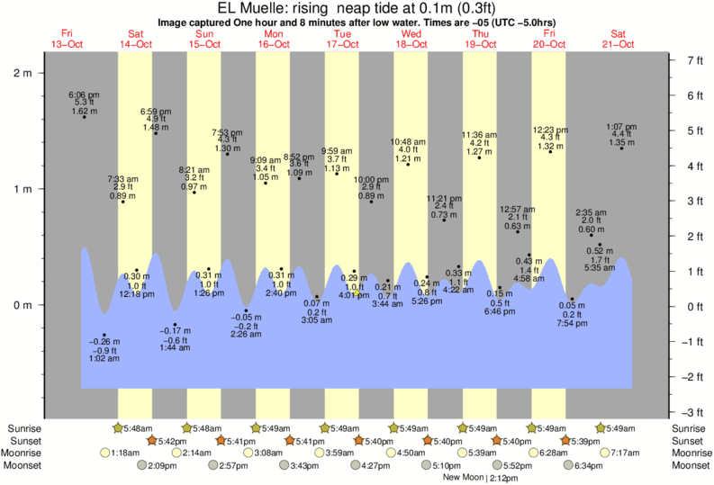 Image captured One hour and 8 minutes after low water (rising neap tide). Tide height was 0.1m (0.3 ft). Range 2.64m (8.7 ft). Toggle tide graph