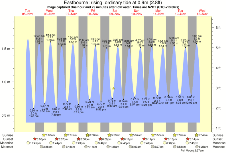 Image captured One hour and 29 minutes after low water (rising ordinary tide). Tide height was 0.9m (2.8 ft). Range 1.45m (4.8 ft). Toggle tide graph