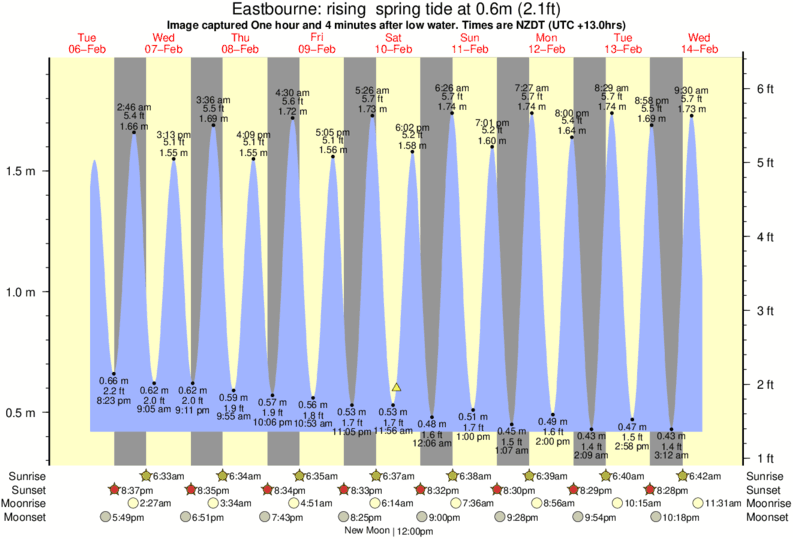 Image captured One hour and 4 minutes after low water (rising spring tide). Tide height was 0.6m (2.1 ft). Range 1.41m (4.6 ft). Toggle tide graph