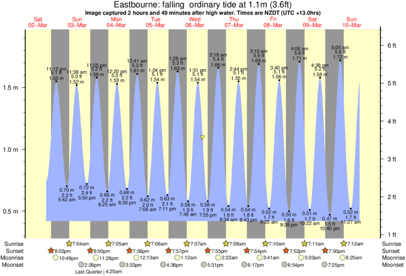 Image captured 2 hours and 49 minutes after high water (falling ordinary tide). Tide height was 1.1m (3.6 ft). Range 1.41m (4.6 ft). Toggle tide graph