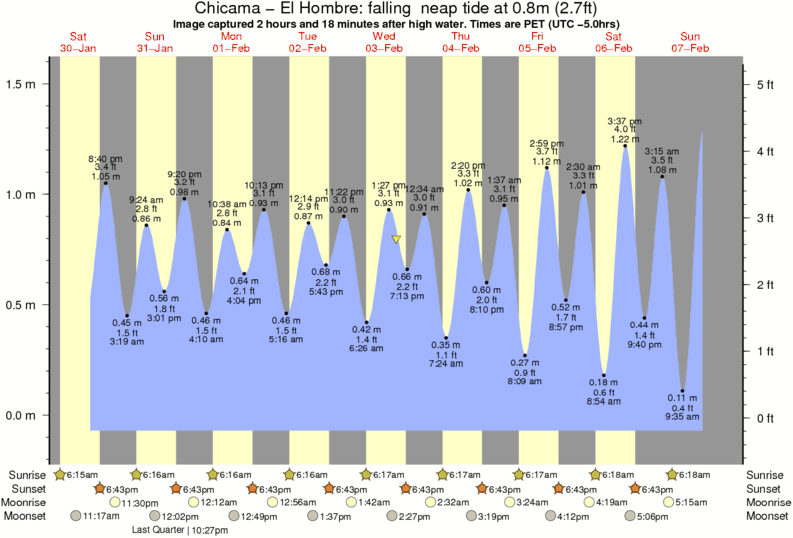 Image captured 2 hours and 18 minutes after high water (falling neap tide). Tide height was 0.8m (2.7 ft). Range 1.54m (5.1 ft). Toggle tide graph