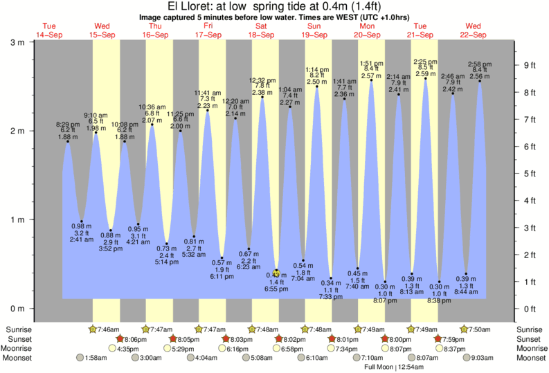 Image captured 5 minutes before low water (at low spring tide). Tide height was 0.4m (1.4 ft). Range 2.65m (8.7 ft). Toggle tide graph