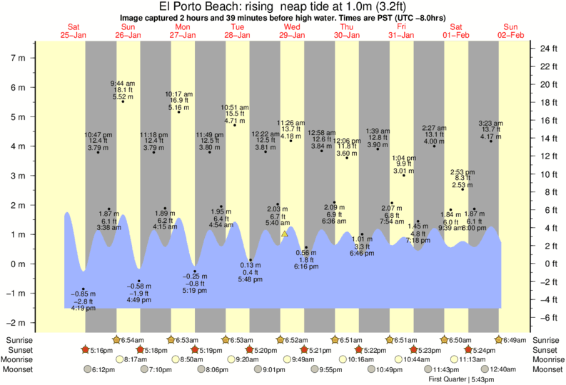 Forecast wind and swell just offshore from El Porto Beach around the time the photo was taken