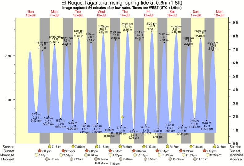 Image captured 54 minutes after low water (rising spring tide). Tide height was 0.6m (1.8 ft). Range 2.39m (7.8 ft). Toggle tide graph