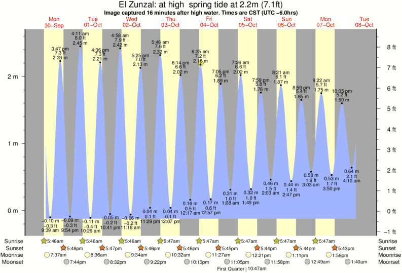 Image captured 16 minutes after high water (at high spring tide). Tide height was 2.2m (7.1 ft). Range 2.57m (8.4 ft). Toggle tide graph
