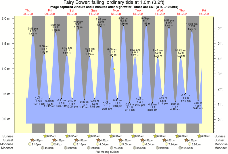 Image captured 2 hours and 5 minutes after high water (falling ordinary tide). Tide height was 1.0m (3.2 ft). Range 1.94m (6.4 ft). Toggle tide graph
