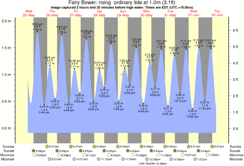 Image captured 2 hours and 25 minutes before high water (rising ordinary tide). Tide height was 1.0m (3.1 ft). Range 1.96m (6.4 ft). Toggle tide graph