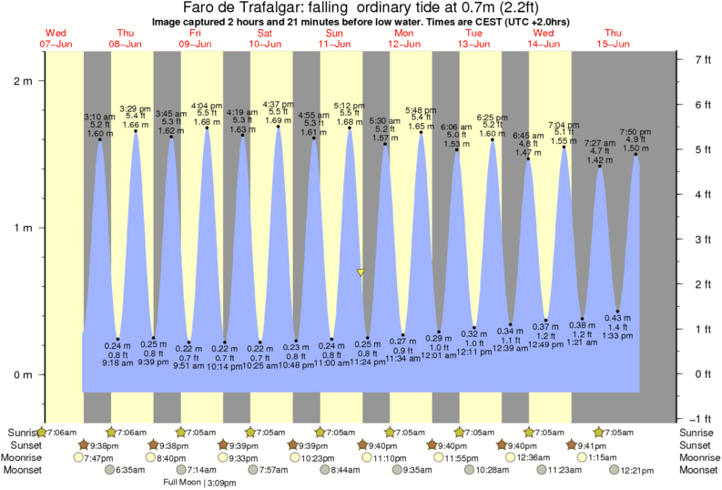 Forecast wind and swell just offshore from Faro de Trafalgar around the time the photo was taken
