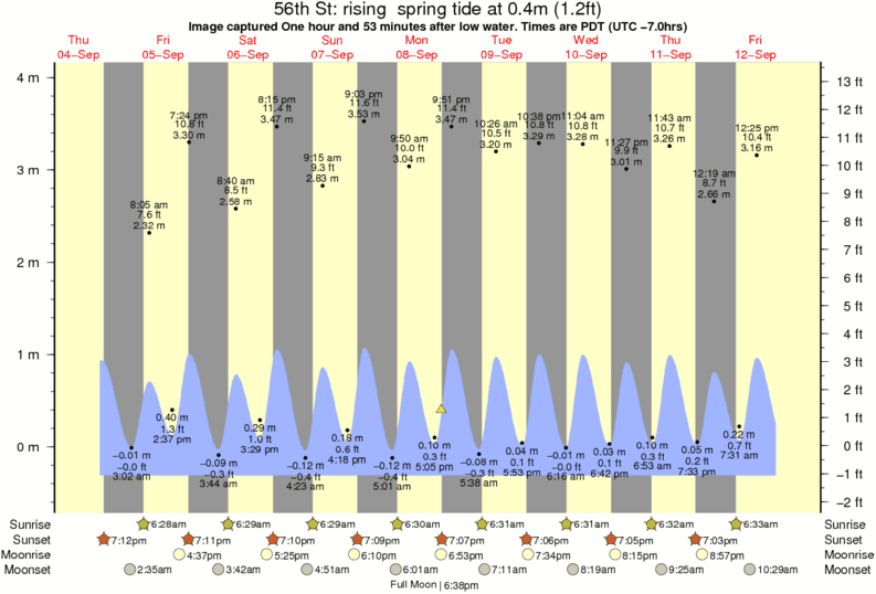 Image captured One hour and 53 minutes after low water (rising spring tide). Tide height was 0.4m (1.2 ft). Range 4.07m (13.4 ft). Toggle tide graph