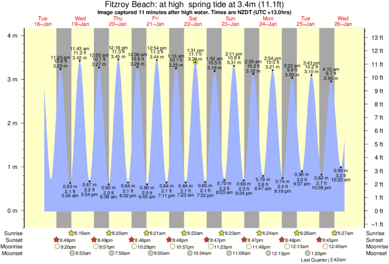 Forecast wind and swell just offshore from Fitzroy Beach around the time the photo was taken