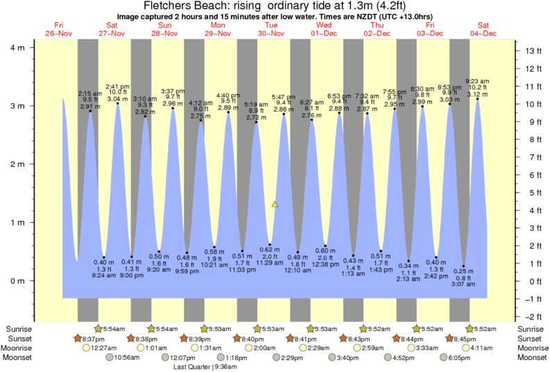 Image captured 2 hours and 15 minutes after low water (rising ordinary tide). Tide height was 1.3m (4.2 ft). Range 4.04m (13.3 ft). Toggle tide graph