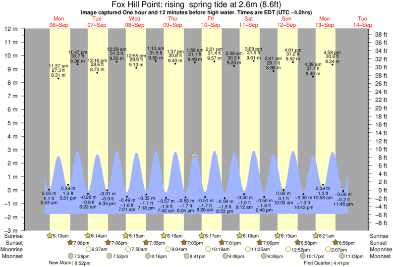 Image captured One hour and 12 minutes before high water (rising spring tide). Tide height was 2.6m (8.6 ft). Range 12.53m (41.1 ft). Toggle tide graph