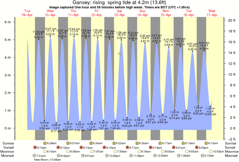 Image captured One hour and 56 minutes before high water (rising spring tide). Tide height was 4.2m (13.6 ft). Range 5.80m (19.0 ft). Toggle tide graph