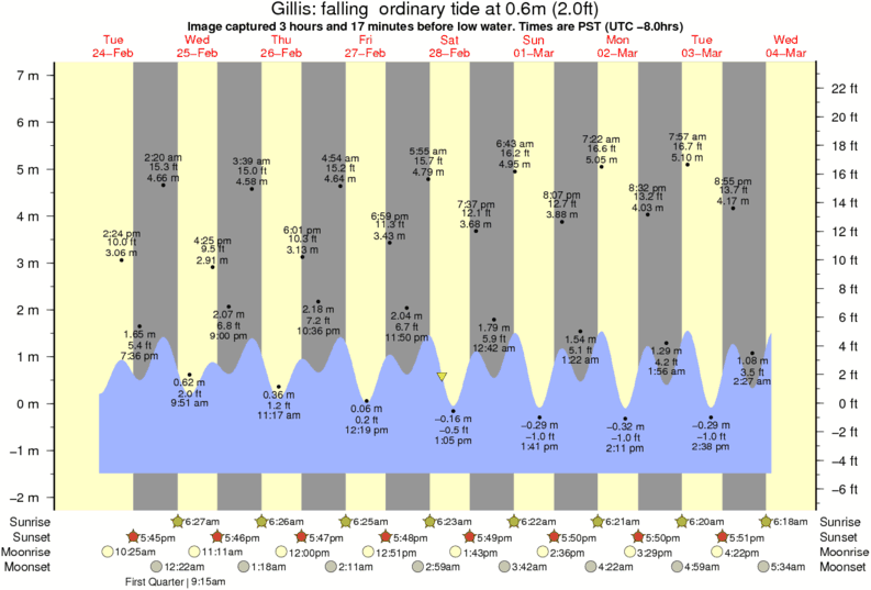 Image captured 3 hours and 17 minutes before low water (falling ordinary tide). Tide height was 0.6m (2.0 ft). Range 7.97m (26.1 ft). Toggle tide graph