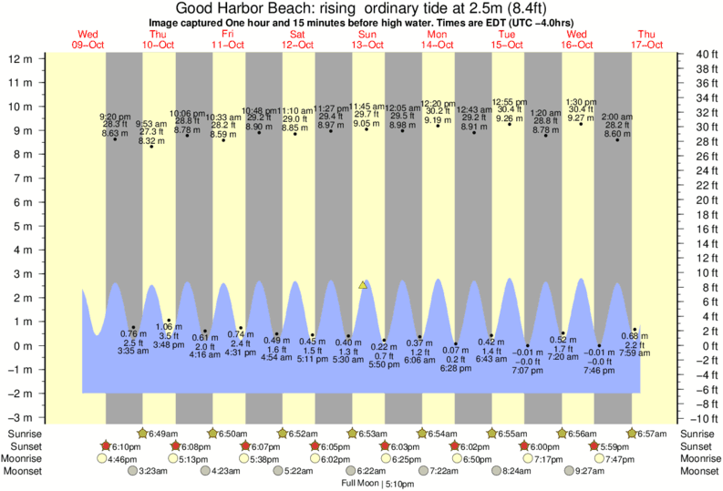 Forecast wind and swell just offshore from Good Harbor Beach around the time the photo was taken